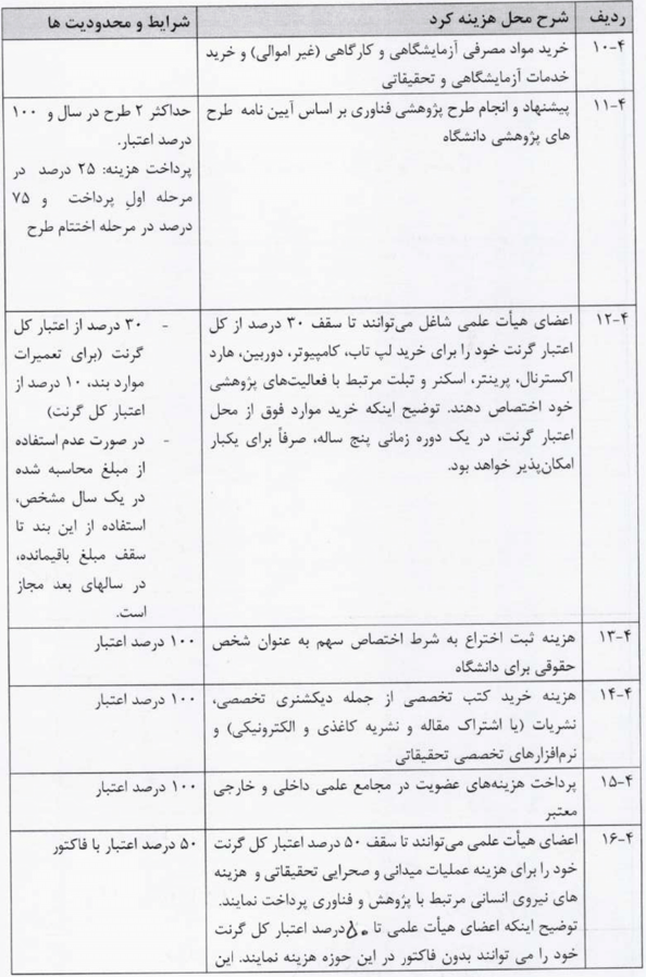 3. محل هزینه‌کرد گرنت این افراد باید مربوط به فعالیت‌های پژوهشی باشد که منتهی به دستاورد پژوهشی به نام دانشگاه هرمزگان می‌شود یا خواهد شد.
