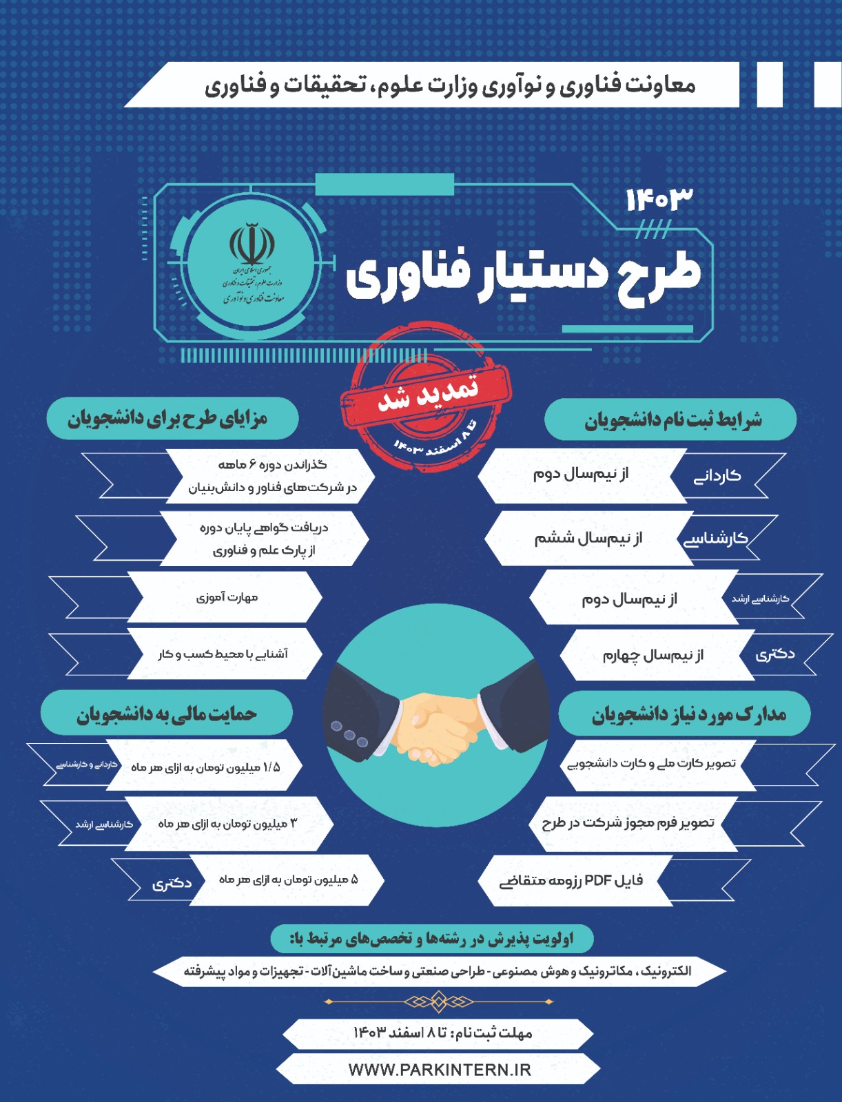 تمدید ثبت نام طرح دستیار فناوری سال 1403