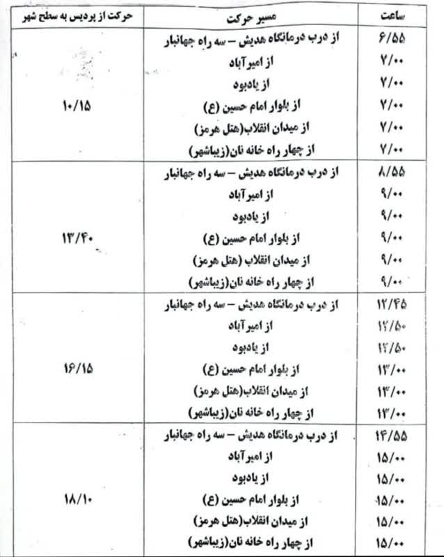 برنامه زمانی حرکت سرویس‌ها در ایام امتحانات