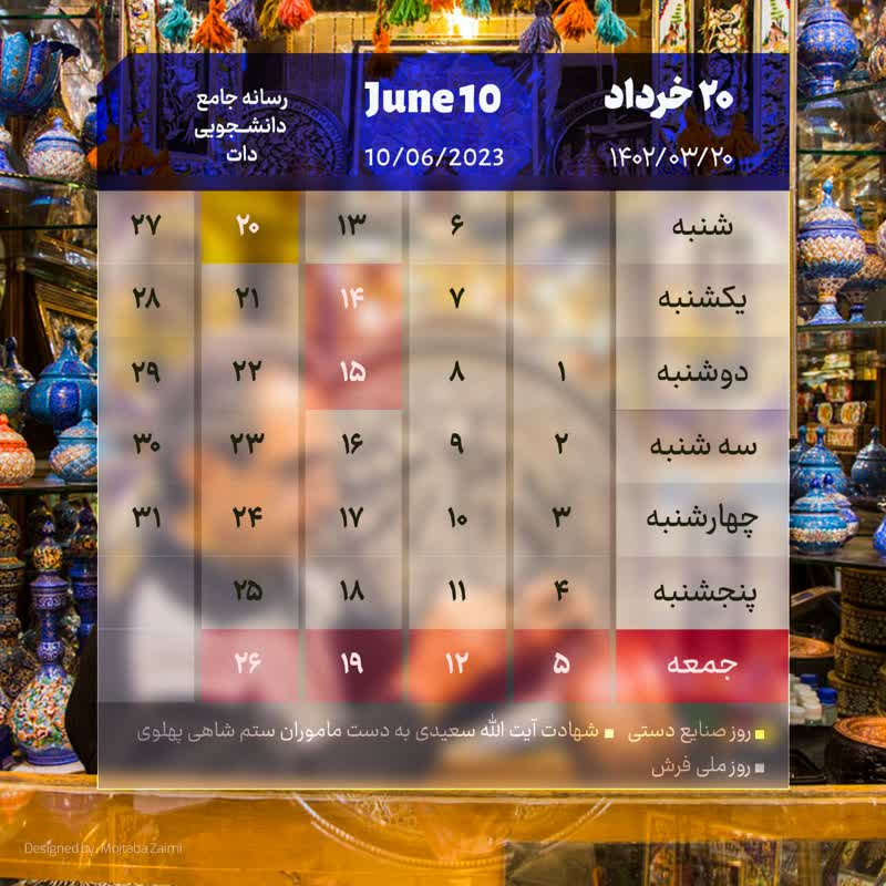 تقویم امروز 20 خرداد ماه 1402