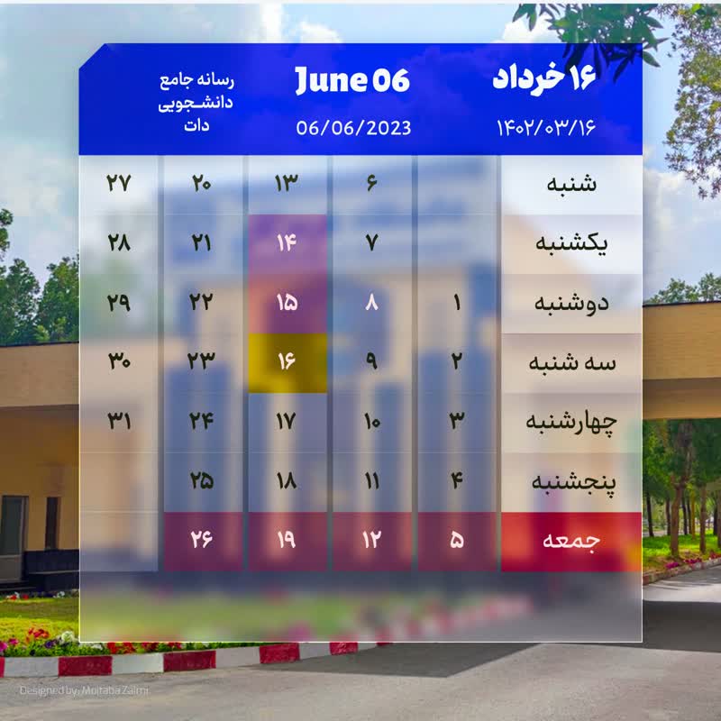 تقویم امروز 16 خرداد ماه 1402