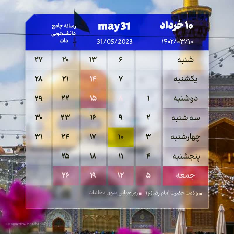 فرا رسیدن ولادت هشتمین اختر تابناک آسمان امامت و ولایت؛ ولی نعمتمان آقا امام رضا علیه السلام بر همگی مبارک باد