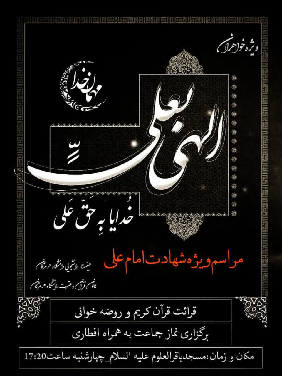 مراسم ویژه شهادت امام علی علیه السلام مسجد باقر العلوم دانشگاه هرمزگان
