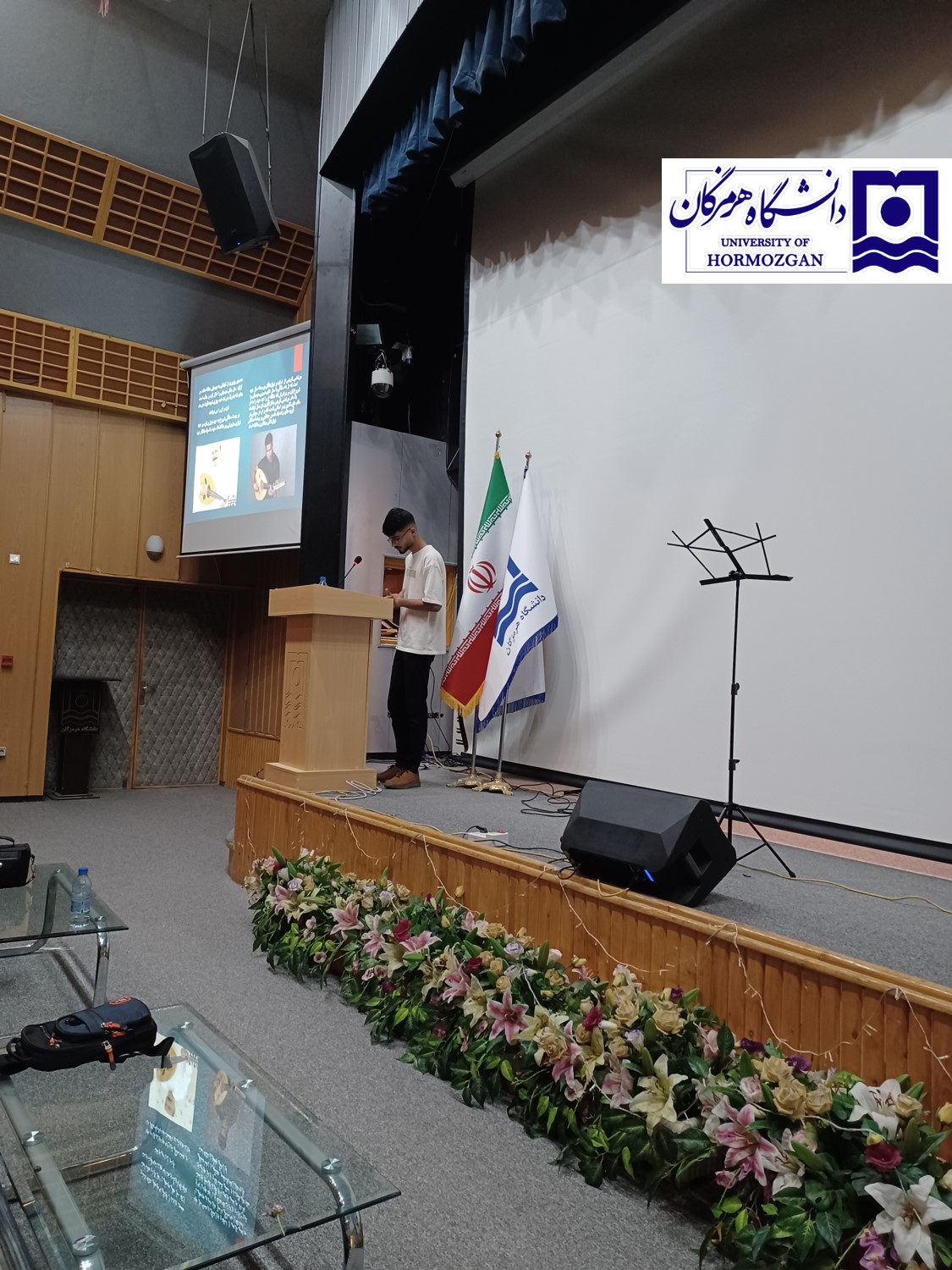 آقای پارسا سالارحسینی، دانشجوی سال اول رشته مدیریت صنعتی دانشگاه هرمزگان و دارنده رتبه اول جشنواره ملی موسیقی جوان ایران، در سخنرانی خود به تاریخچه و ریشه‌های موسیقی هرمزگان پرداخت. وی اظهار داشت: «منشأ موسیقی هرمزگان به دوران تجارت در خلیج‌فارس بازمی‌گردد، زمانی که حضور بردگان آفریقایی و تعاملات فرهنگی با دیگر سرزمین‌ها، بستری برای شکل‌گیری این موسیقی فراهم کرد. این موسیقی، که در ابتدا از رنج و غم سیاه‌پوستان سرچشمه گرفت، با الهام از محیط بومی جنوب، به بخشی از هویت فرهنگی هرمزگان تبدیل شد.»