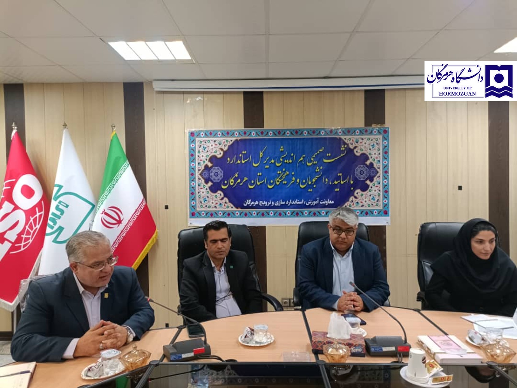 نشست مشترک اداره کل استاندارد هرمزگان با دبیران انجمن‌های علمی و کانون‌های فرهنگی دانشگاه هرمزگان با هدف تقویت همکاری‌های آموزشی، کارآموزی و پژوهشی برگزار شد. در این جلسه بر استفاده از ظرفیت آزمایشگاه‌ها و صنایع زیرمجموعه استاندارد برای مهارت‌آموزی و اجرای برنامه‌های فرهنگی در هفته استاندارد تأکید شد.