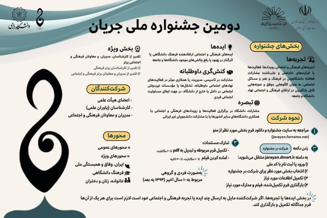 فراخوان دومین جشنواره ملی جریان؛ فرصتی برای تبادل ایده‌‍‌ها و تجربه‌های موفق فرهنگی و اجتماعی دانشگاه‌ها