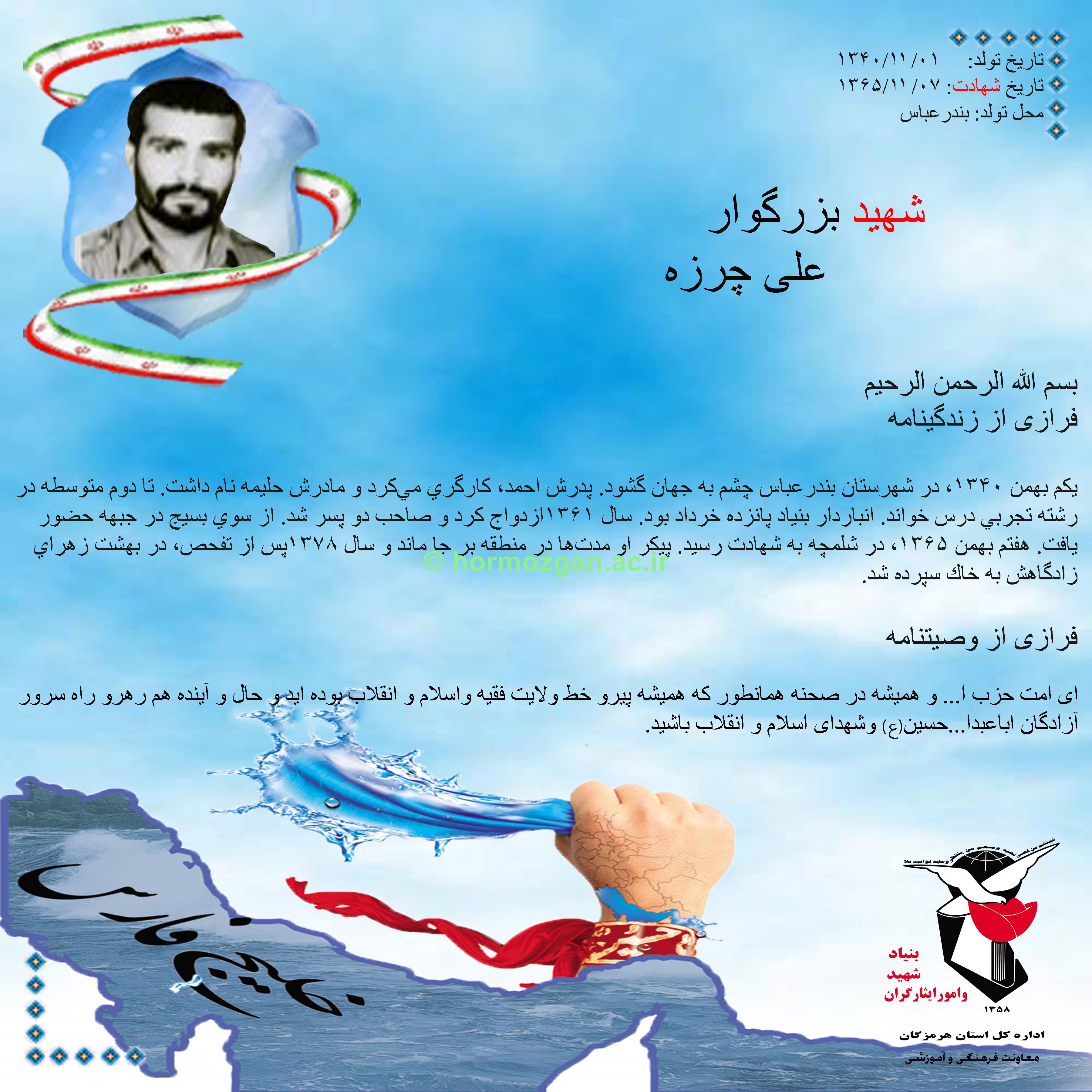 وصیت نامه شهیدان بزرگوار علی چرزه و علی رضایی سردره