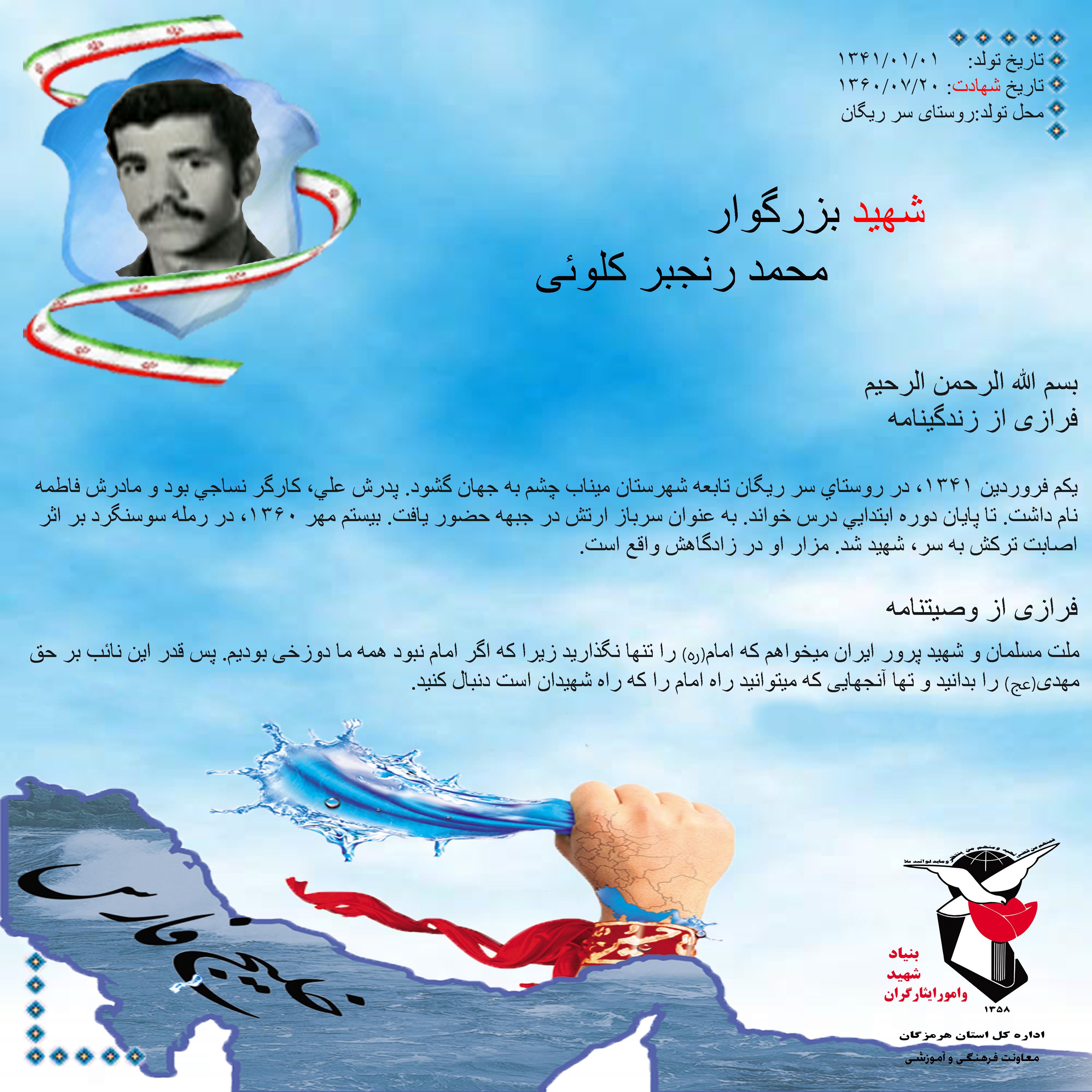 فرازی از زندگینامه و وصیتنامه شهید بزرگوار محمد رنجبر کلوئی