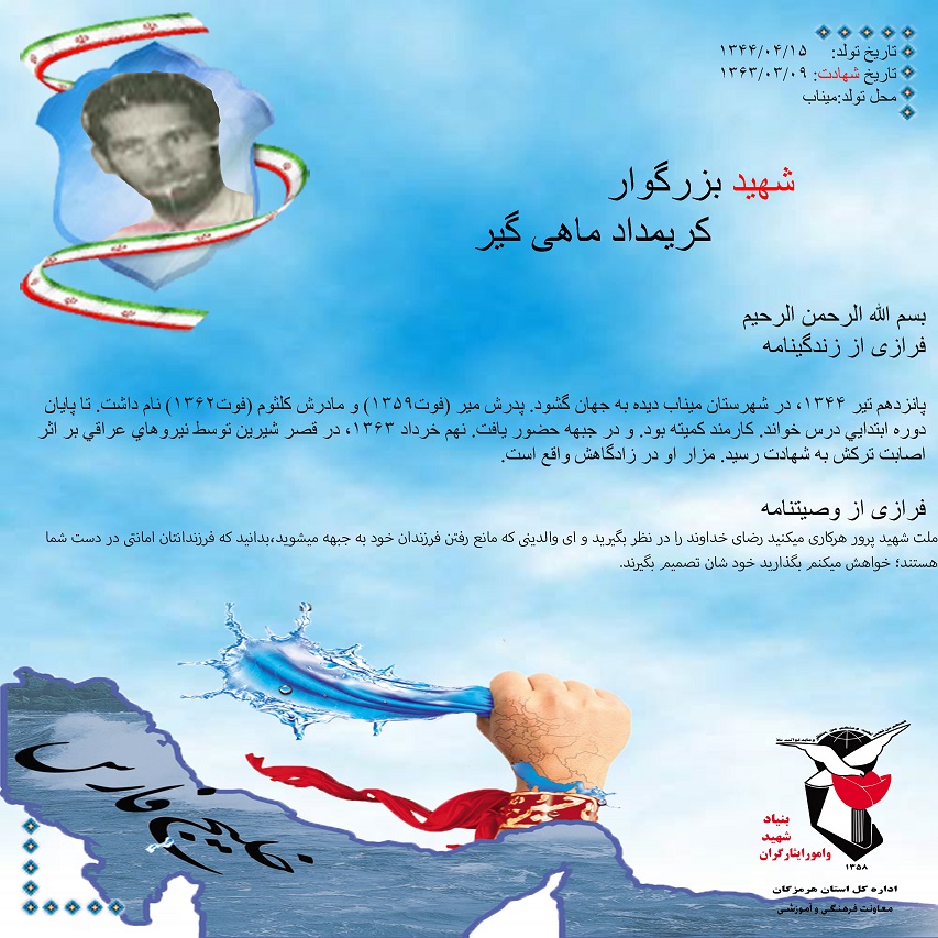 فرازی از زندگینامه و وصیتنامه شهید بزرگوار کریمداد ماهی گیر