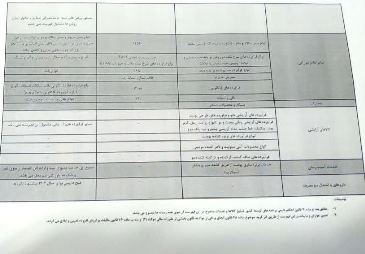 فهرست کالاها و خدمات آسیب رسان به سلامت، جهت منع تبلیغات