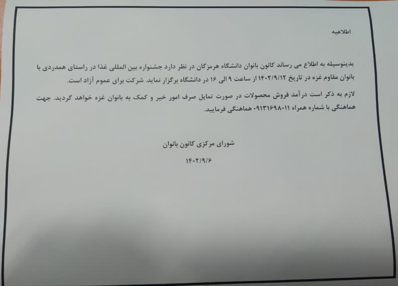 جشنواره بین المللی غذا در راستای همدردی با بانوان مقاوم غزه