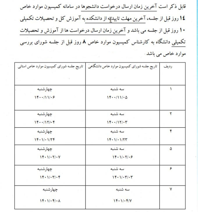 تاریخ برگزاری کمیسیون موارد خاص