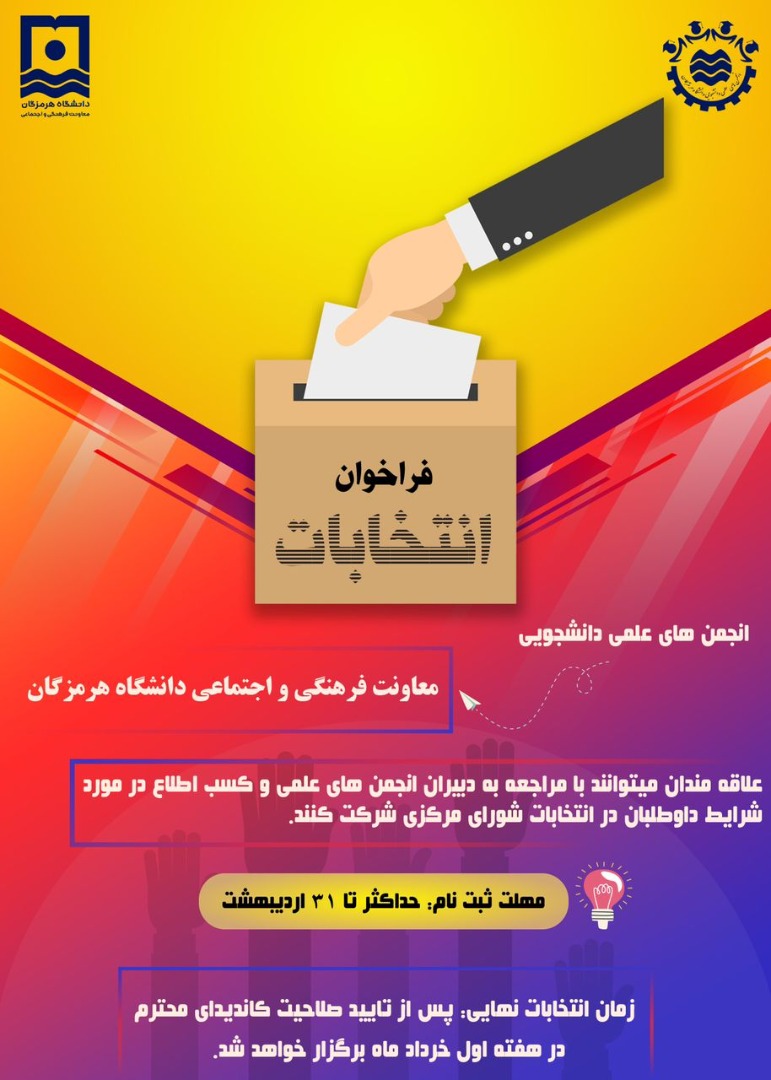 فراخوان انتخابات انجمن های علمی دانشجویی دانشگاه هرمزگان