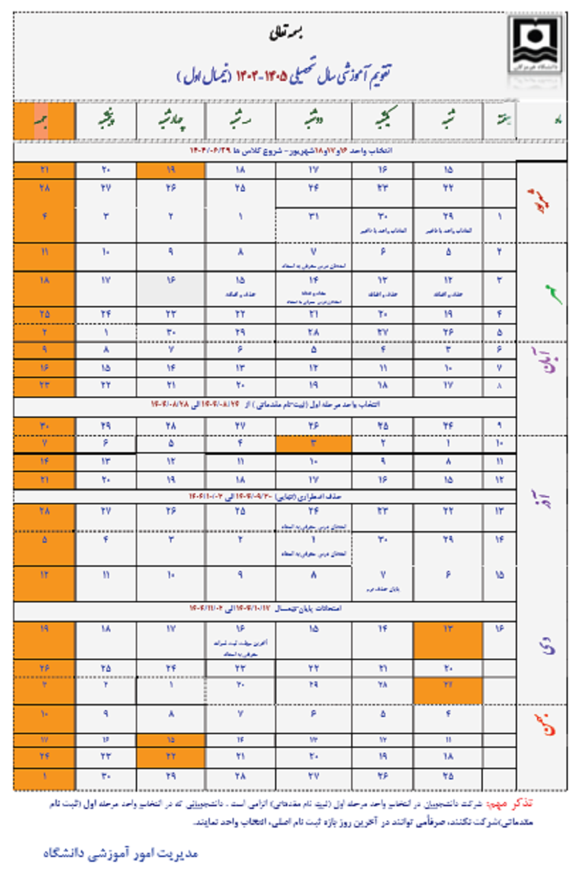 - تقویم آموزشی