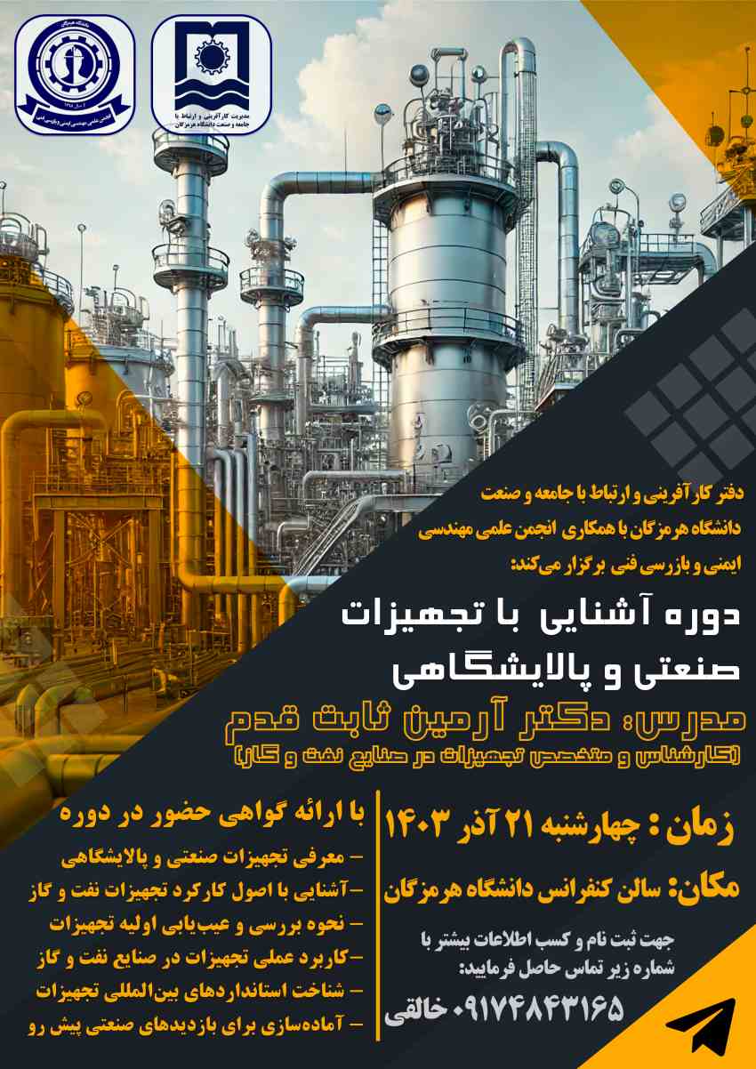 برگزاری کارگاه مهارت افزائی با عنوان " آشنایی با تجهیزات صنعتی و پالایشگاهی"