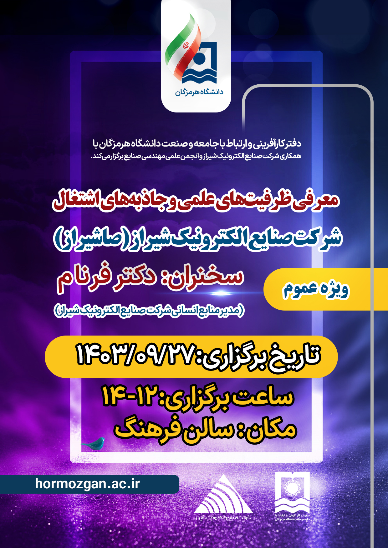 همایش معرفی ظرفیت‌های علمی و جاذبه‌های اشتغال شرکت صنایع الکترونیک شیراز (صاشیراز)
