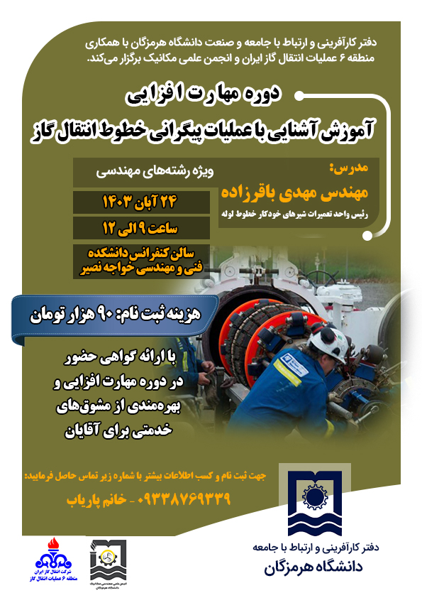 برگزاری کارگاه مهارت افزائی با عنوان آموزش آشنایی با عملیات پیگرانی خطوط انتقال گاز