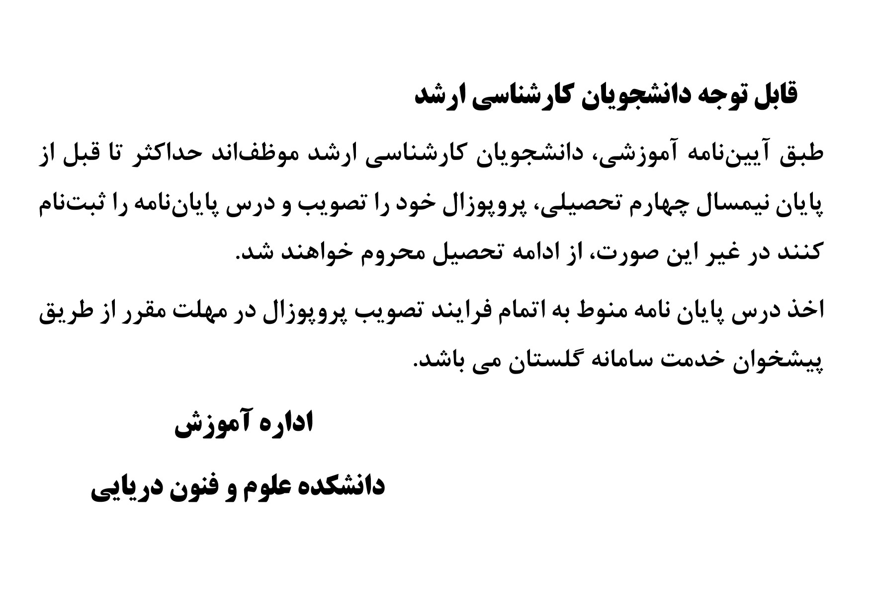 قابل توجه دانشجویان تحصیلات تکمیلی