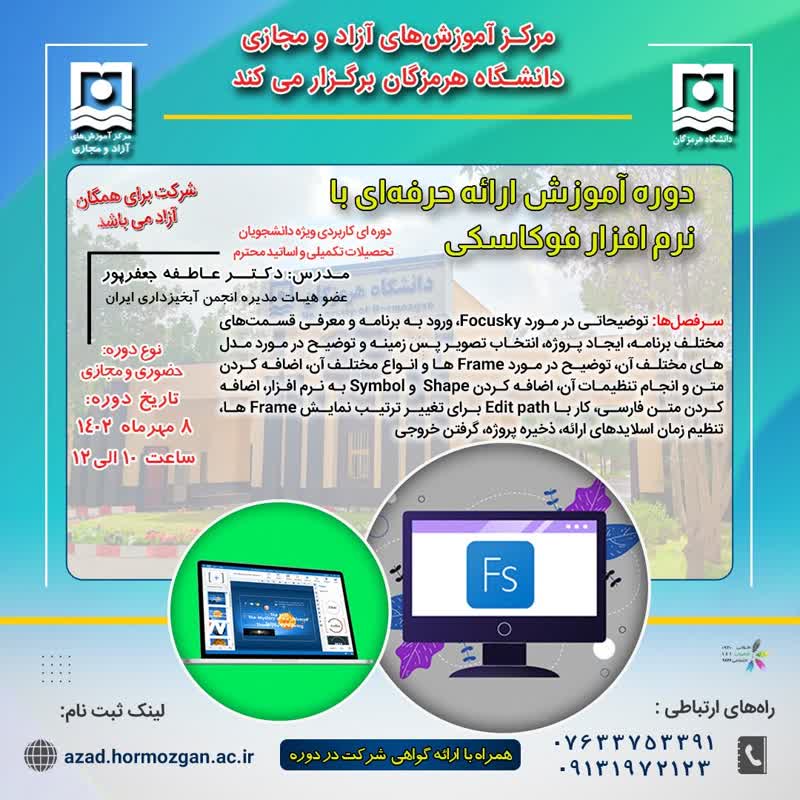 برگزاری دوره ارائه حرفه ای با نرم افزار فوکاسکی / ویژه عموم