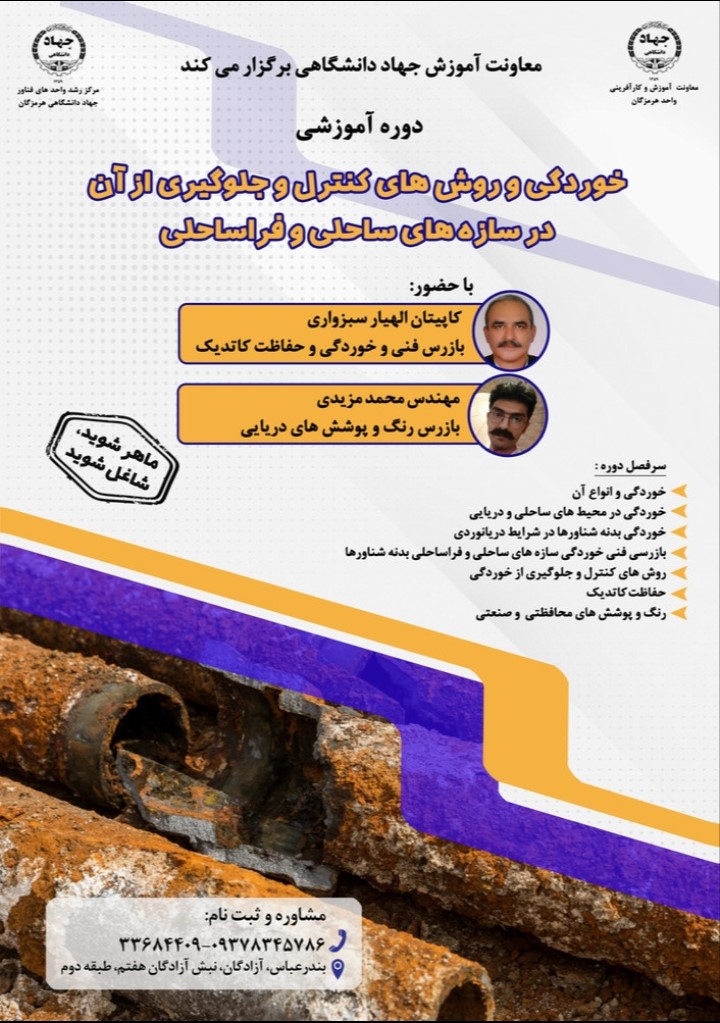 دوره آموزشی خوردگی و روش های کنترل و جلوگیری از آن در سازه های ساحلی و فراساحلی
