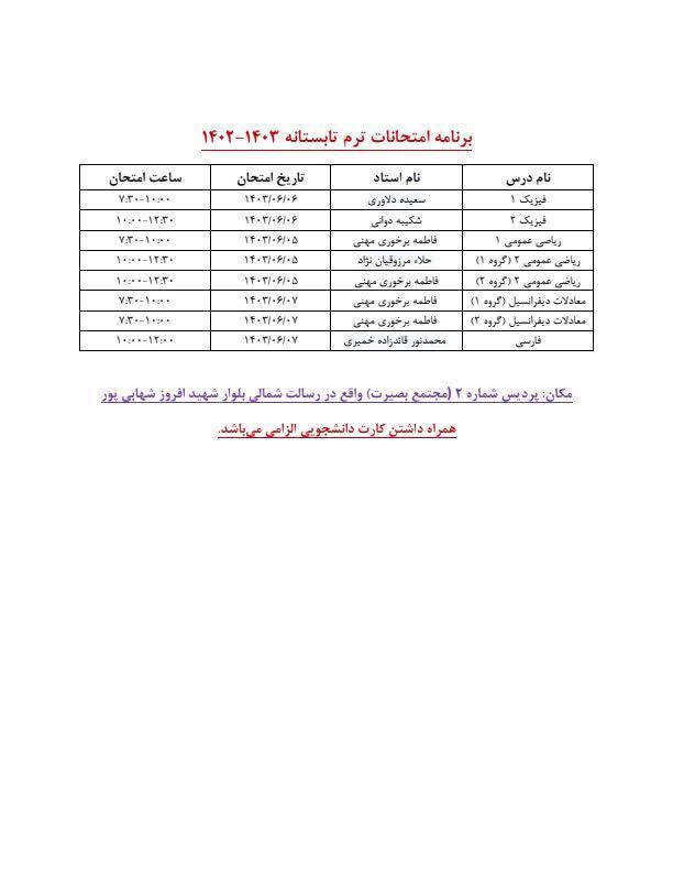 سرفصل دروس و برنامه ترمیک کارشناسی و تحصیلات تکمیلی