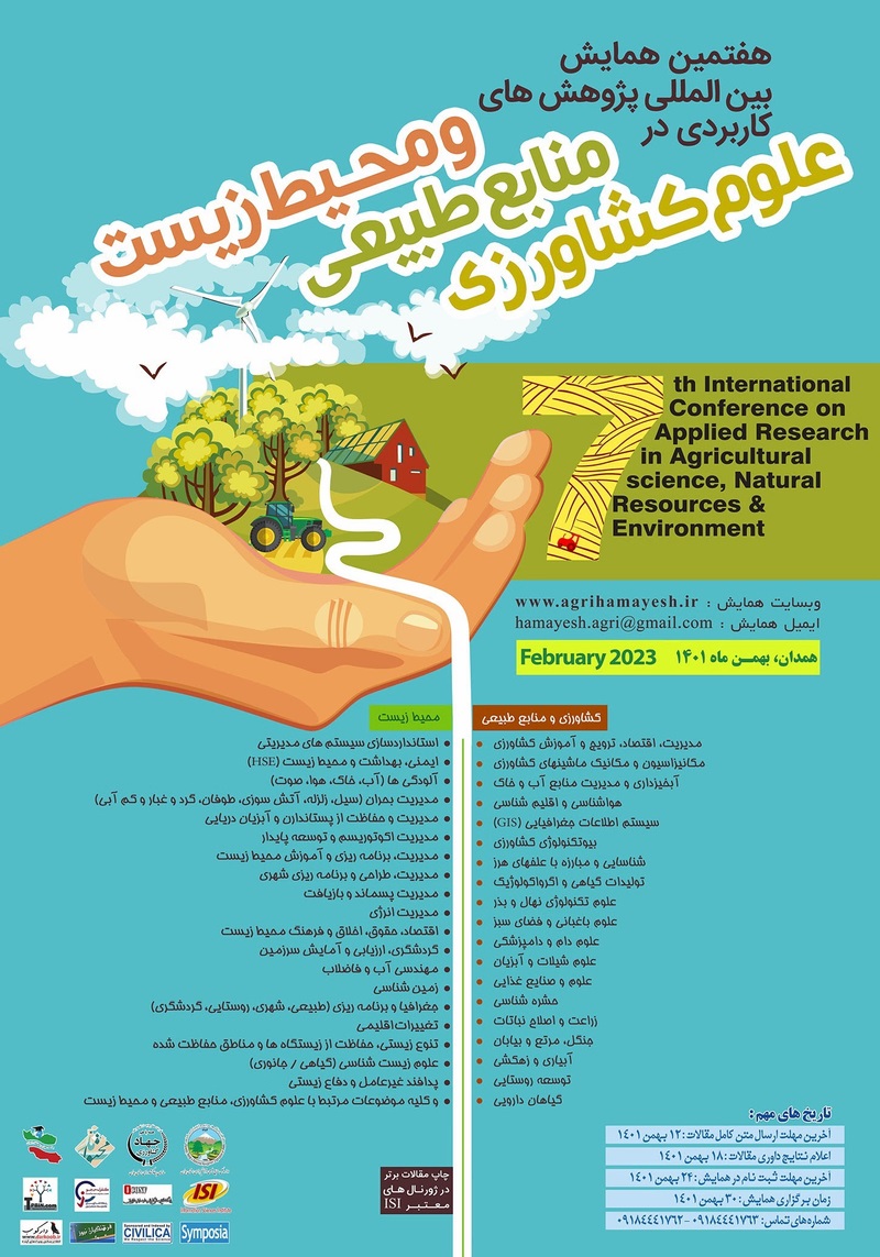 هفتمین همایش بین المللی پژوهش های کاربردی در علوم کشاورزی، منابع طبیعی و محیط زیست در همدان