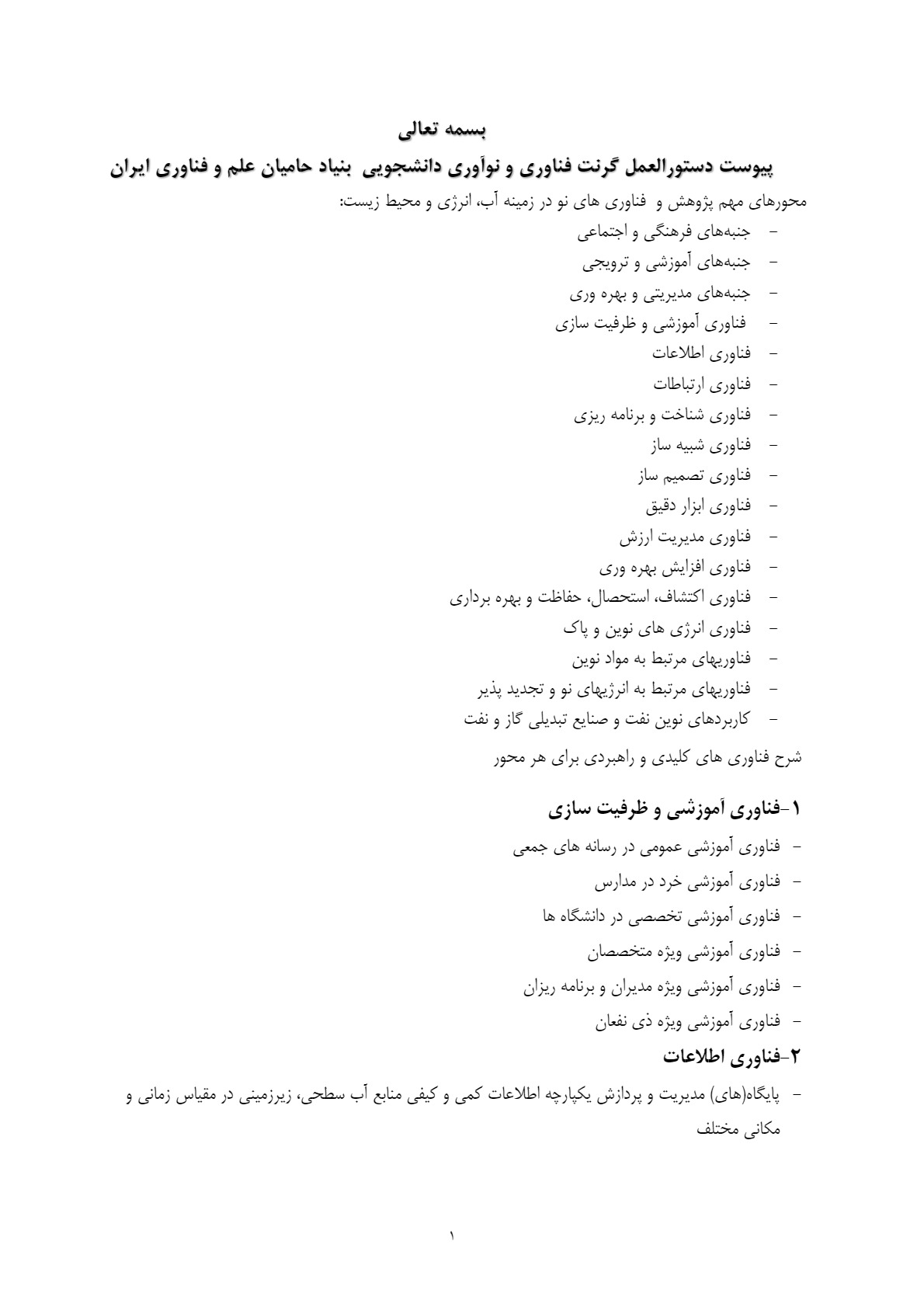 دستورالعمل تخصیص گرنت فناوری دستورالعمل تخصیص گرنت فناوری و نوآوری دانشجویی بنیاد حامیان علم و فناوری ایران
