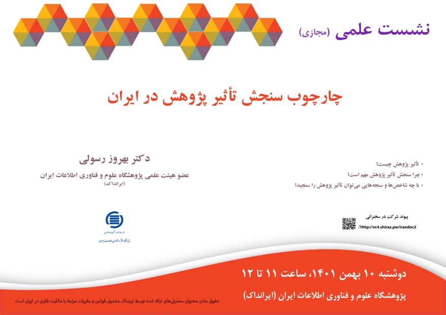 دعوت به سخنرانی علمی با عنوان"چارچوب سنجش تاثیر پژوهش در ایران"