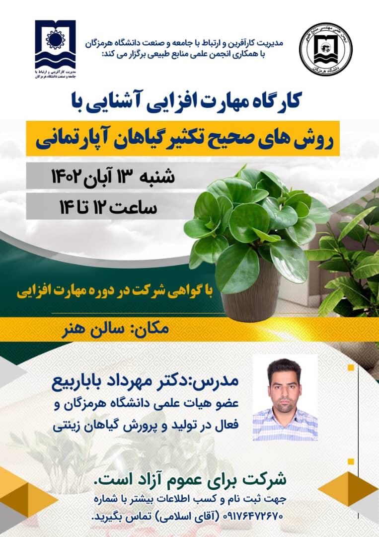 کارگاه مهارت افزایی آشنایی با روش های صحیح تکثیر گیاهان آپارتمانی