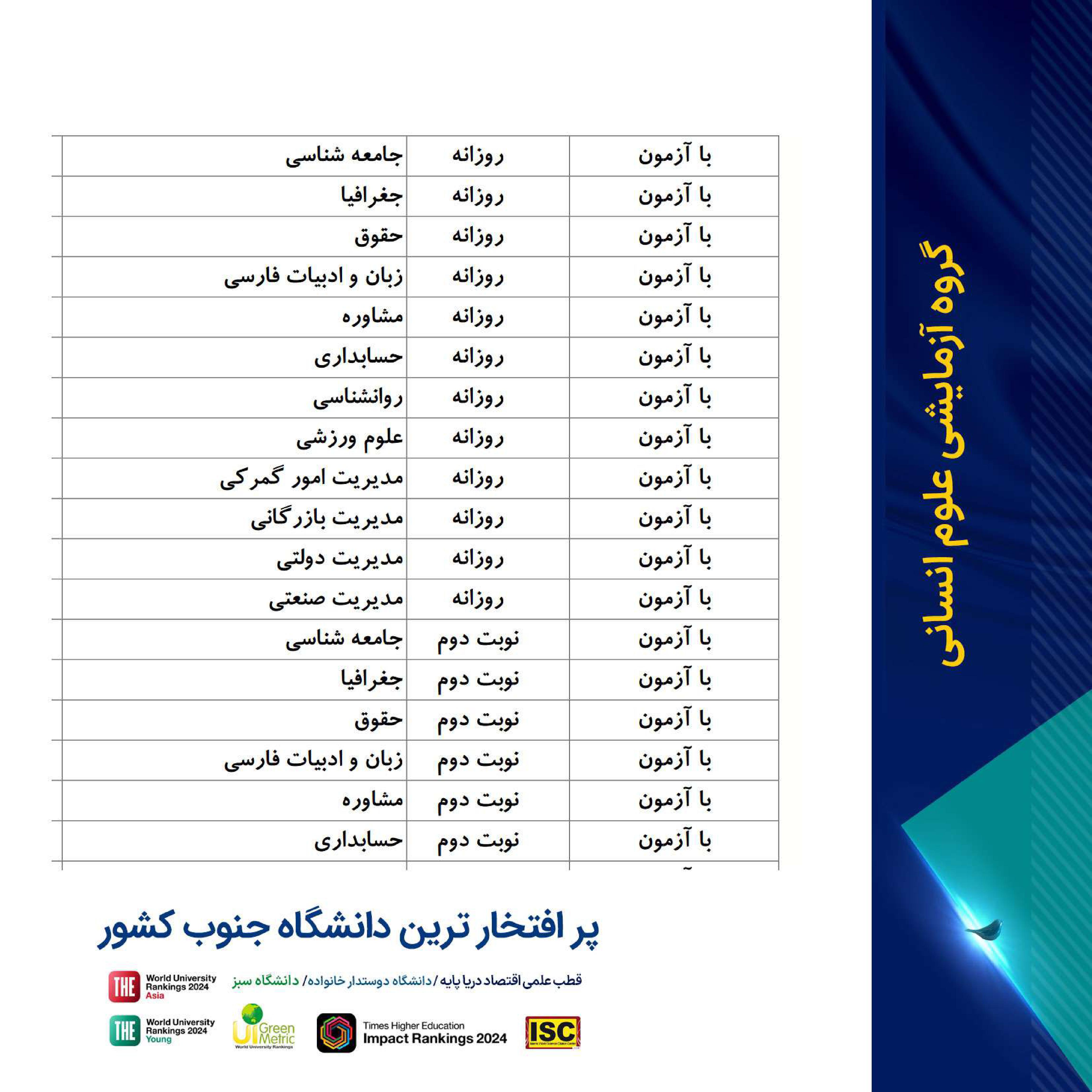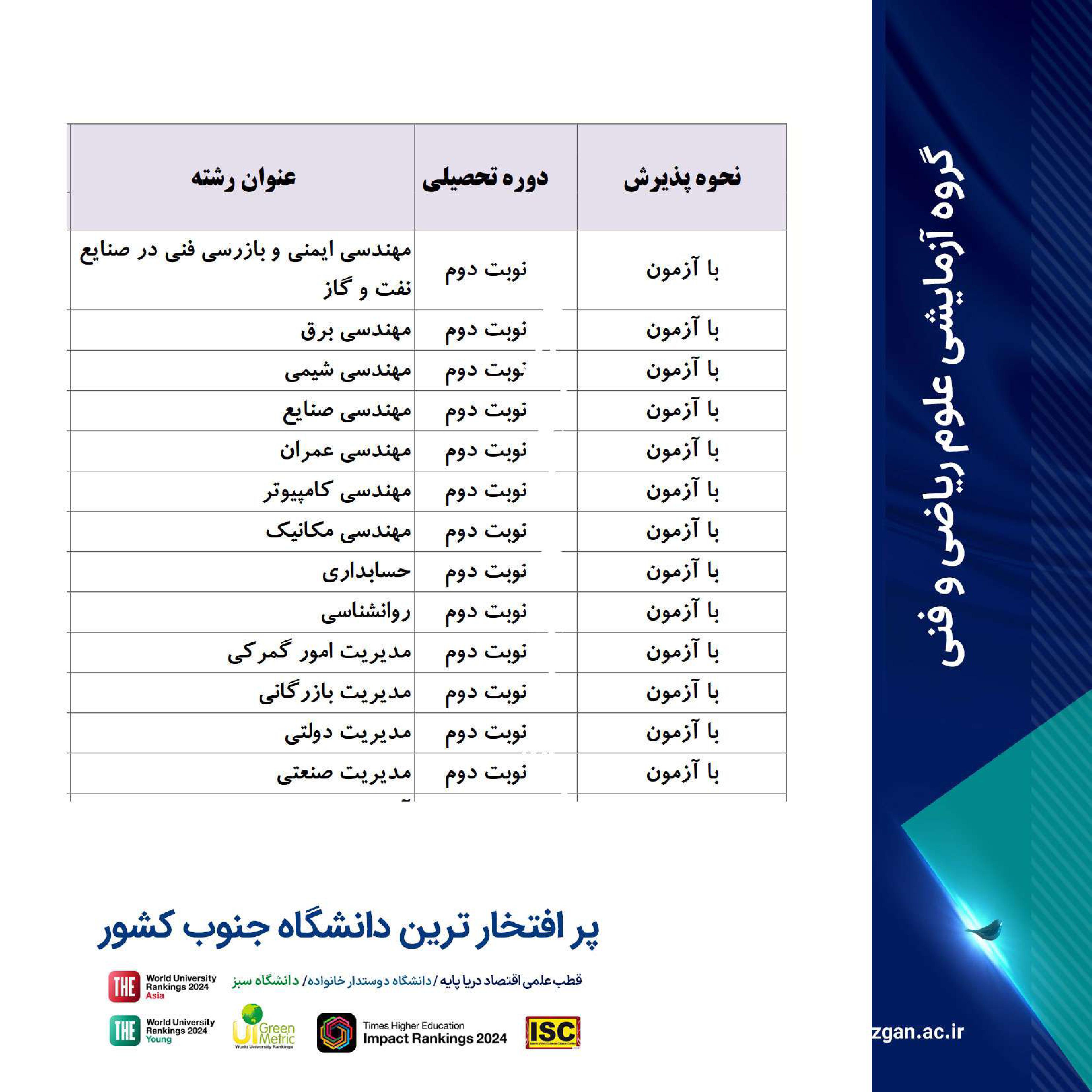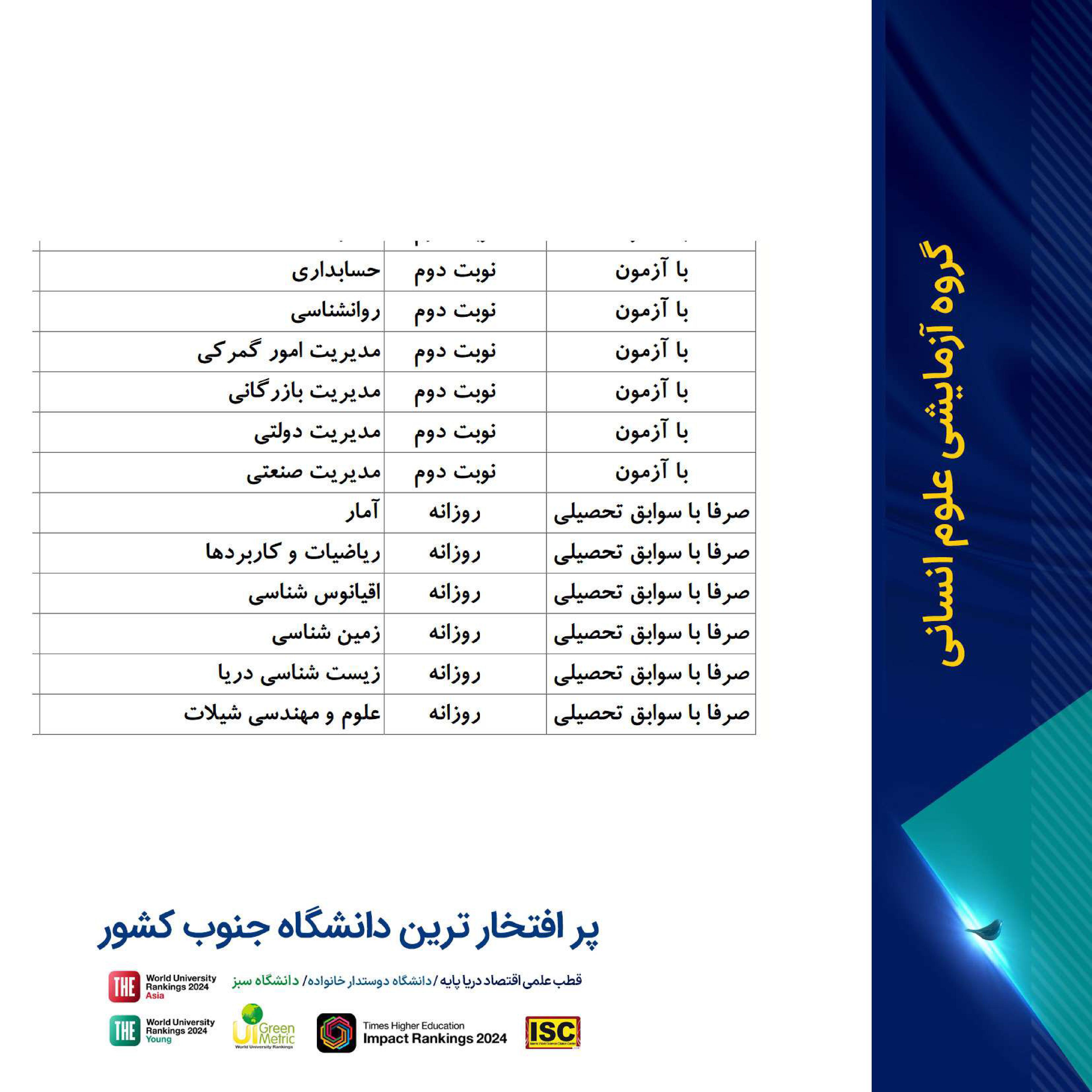 فرصت تحصیل در پر افتخارترین دانشگاه جنوب کشور