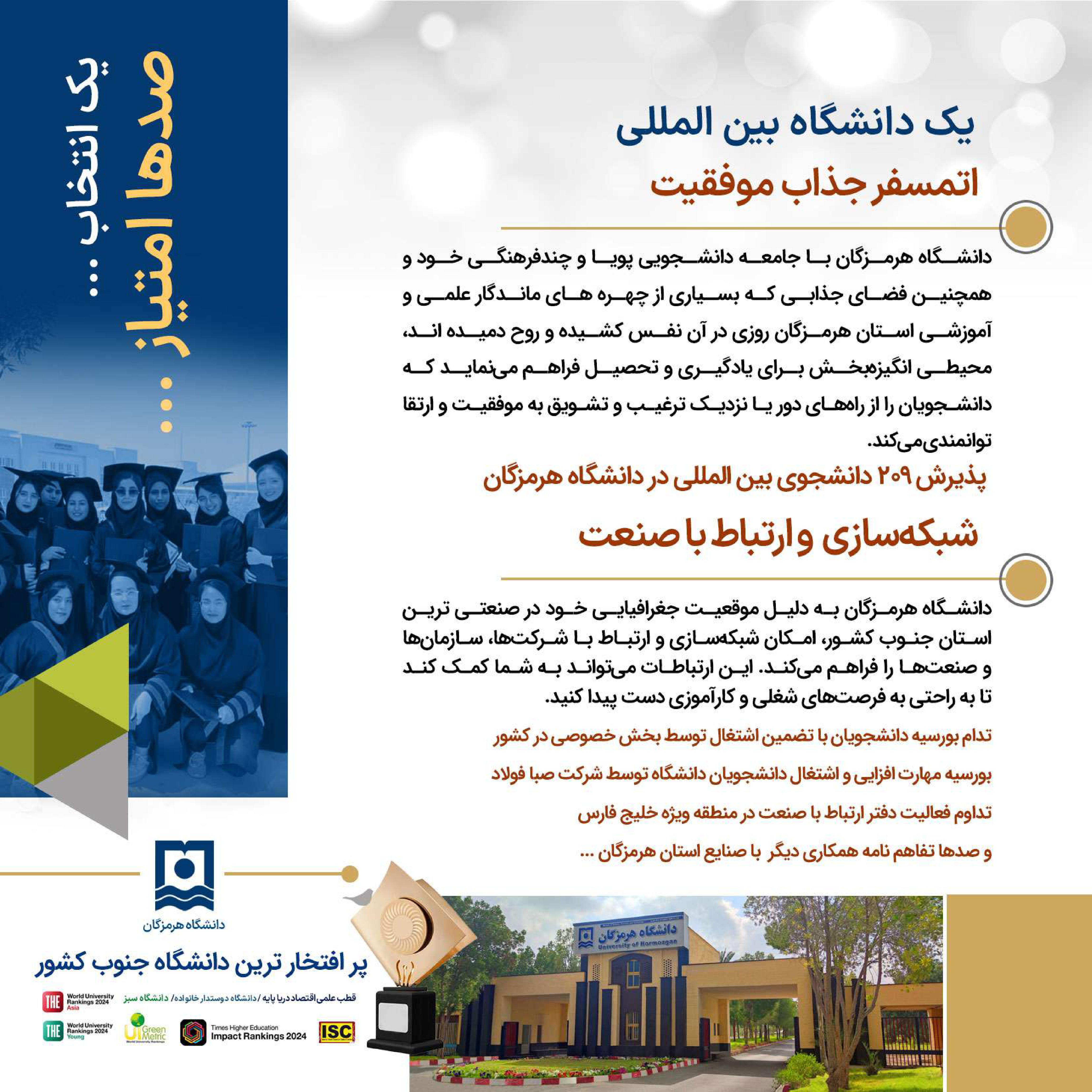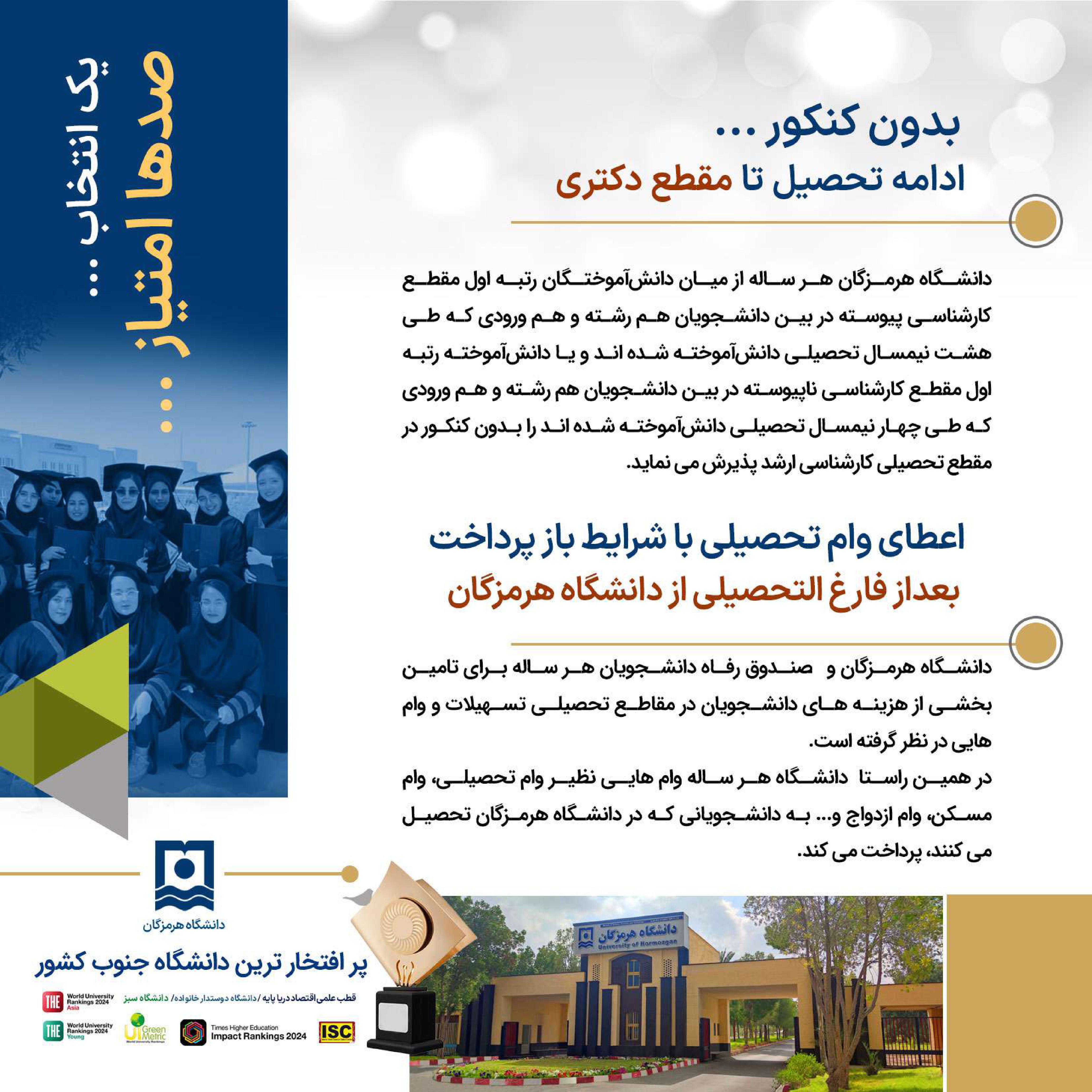 دانشگاه هرمزگان ، انتخاب آینده ای روشن ... فرصت تحصیل در پر افتخارترین دانشگاه جنوب کشور