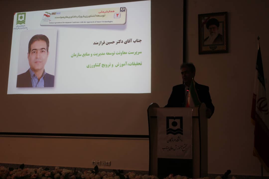 سپس مهندس رادمهر فرماندار ویژه شهرستان میناب ضمن ابراز خرسندی از برگزاری دومین همایش ملی توسعه کشاورزی هوشمند و تجلیل از دست­اندرکاران برگزاری همایش، بر مشارکت بخش­های مختلف مرتبط با موضوع همایش تاکید کرده و بر لزوم حرکت در مدار استفاده از فناوری­های نوین ازجمله هوش مصنوعی در بخش کشاورزی صحبت کردند.